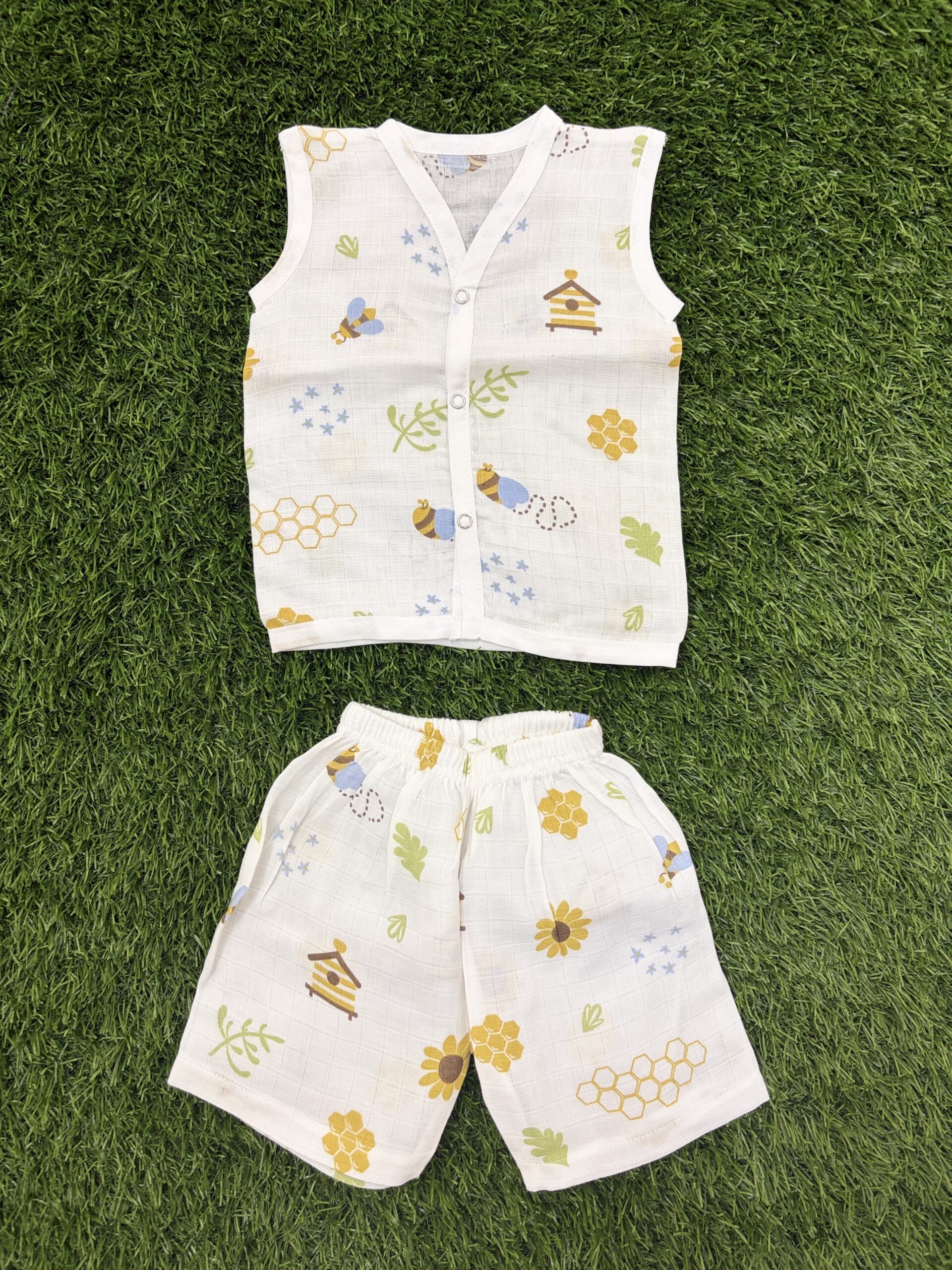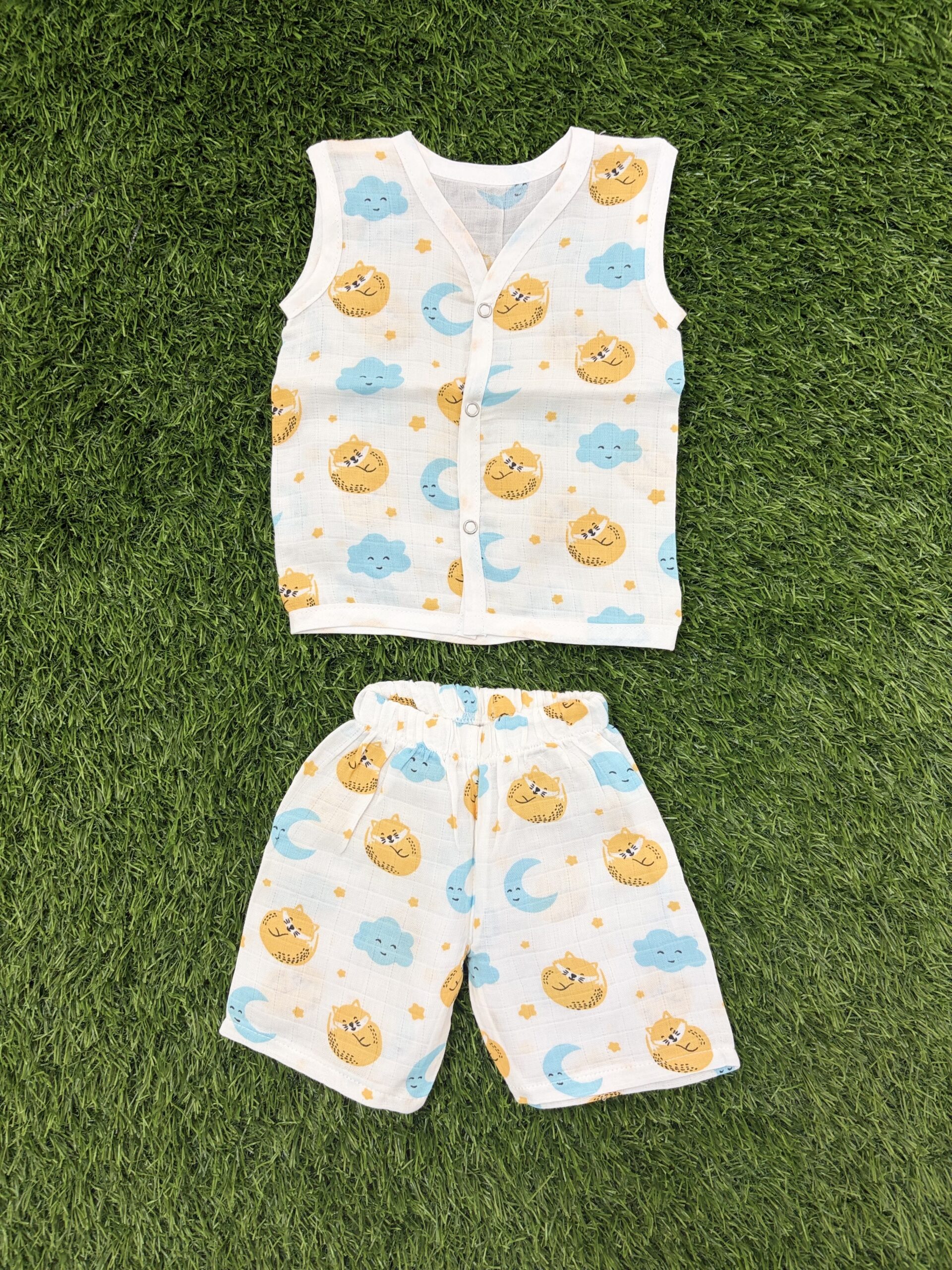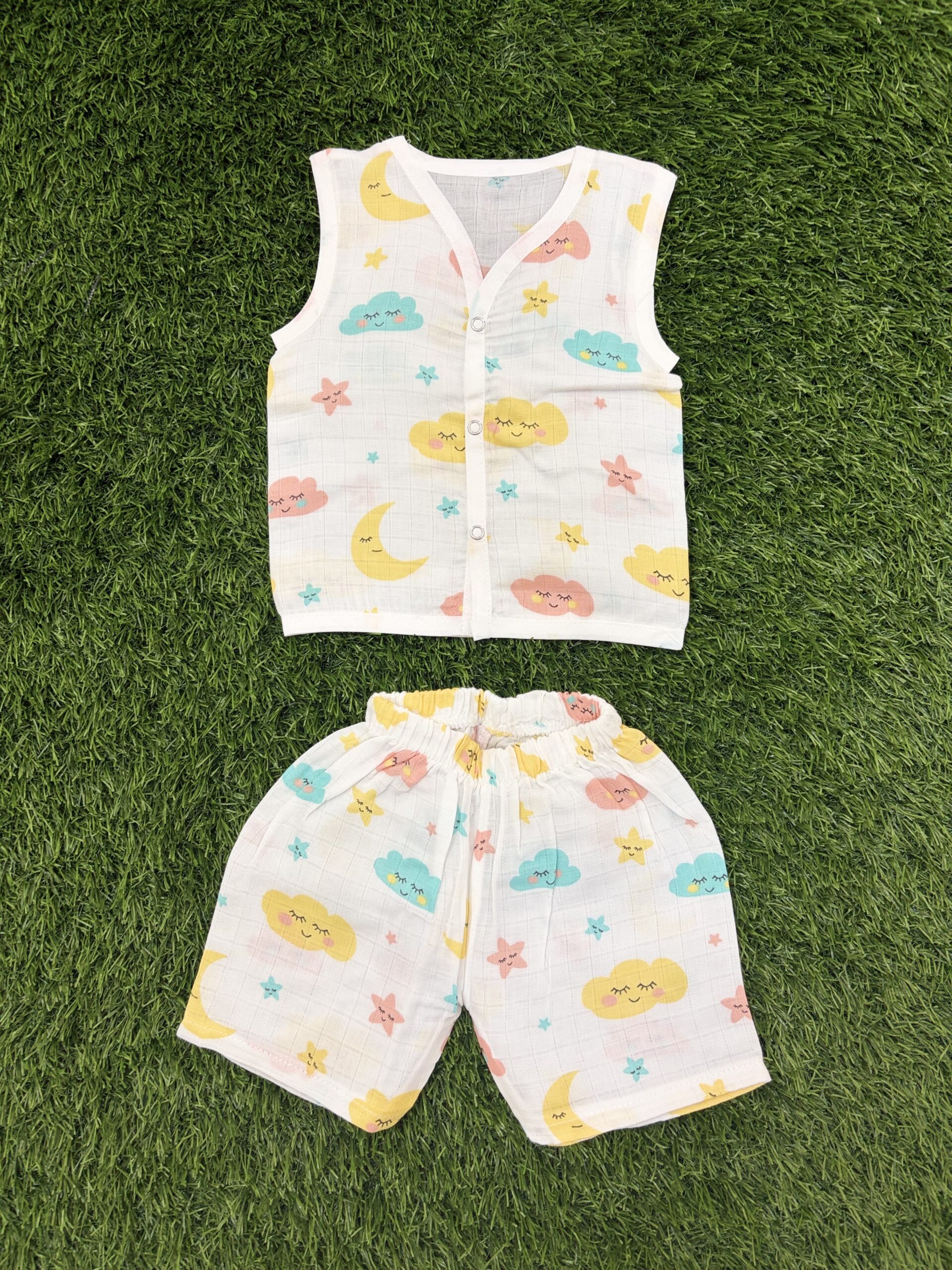 Premium Muslin Fabric: Made from breathable, lightweight muslin that’s gentle on delicate baby skin — ideal for warm weather and sensitive skin.